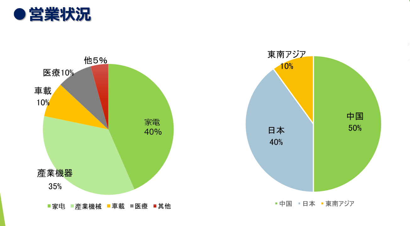 产品占比情况:家电占比50%,机械产业占比25%,医疗/车载占比10%,其他占比5%。